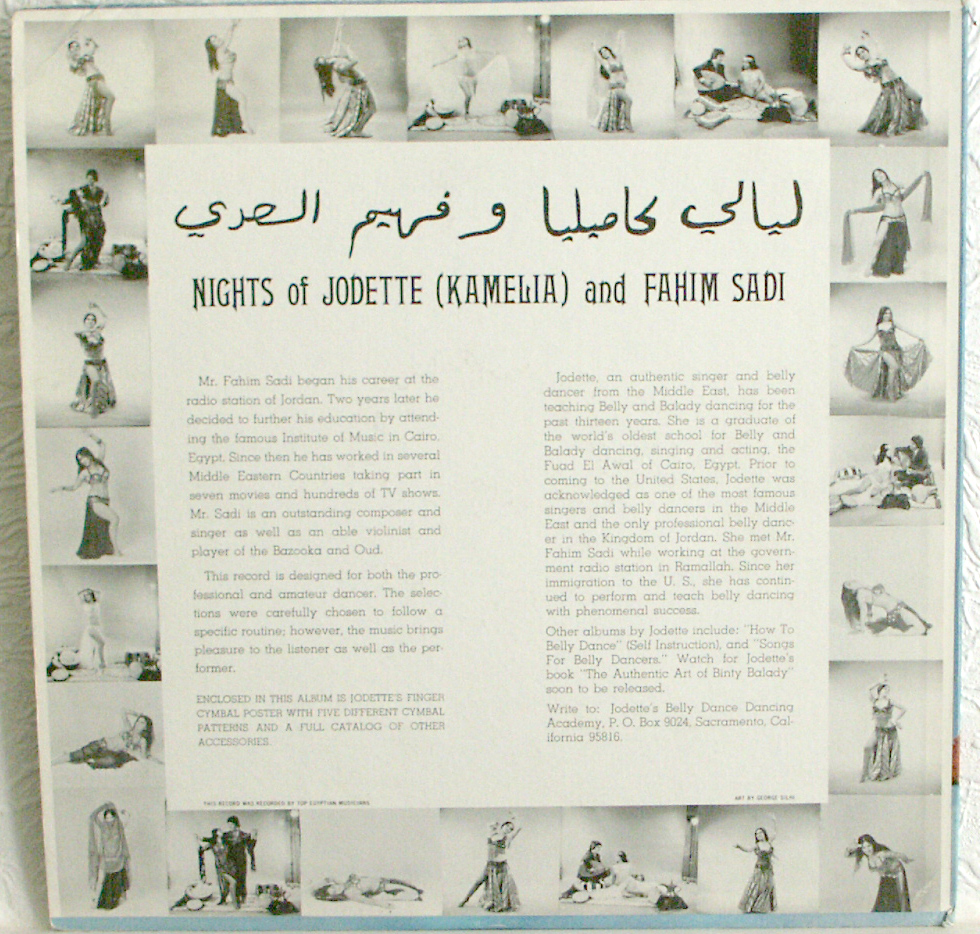the link above goes to the "Jodette International" website, which I have to assume is the same Jodette, and it looks like she's still pumping out the dances and even has a brand new CD (she wears a big veil now, so it's hard to compare the pics to see if she's the same Jodette). I checked out her offering of tapes and CD's and didn't see this one listed (there's a "Night of Jodette" but it's with a different musician. I think it's different than the one I have posted, but if someone finds out otherwise, let me know and I'll remove this sharity. I don't want to mess with her means of making a living.)